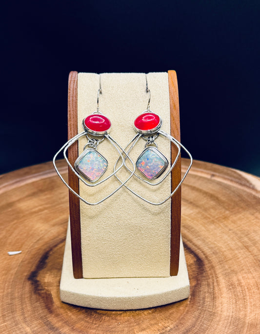• Sterling Silver Stellar Opal and Rani Chalcedony Earrings