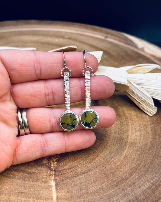 • Opalized Wood and Teal Moss Kyanite Sterling Silver Earrings