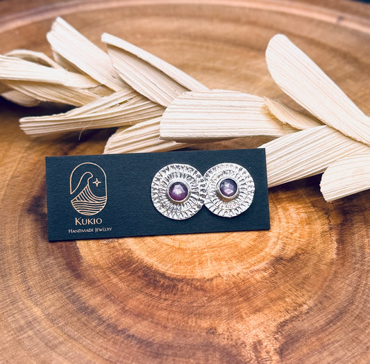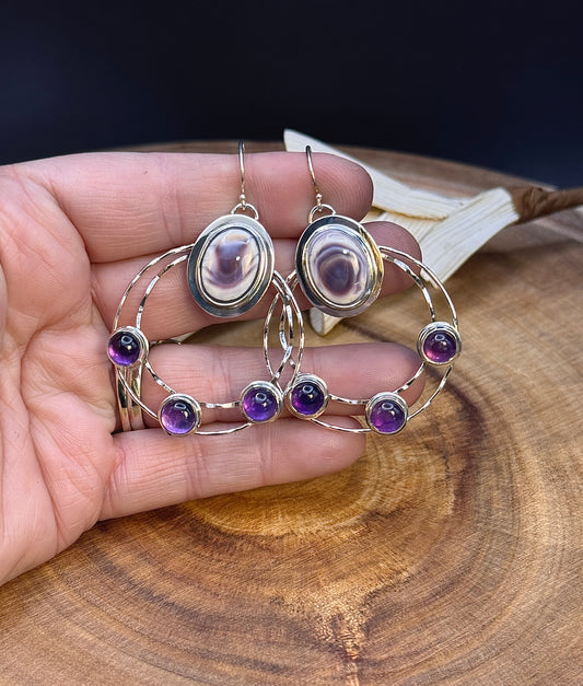 Sterling Silver Wampum Shell and Amethyst Earrings