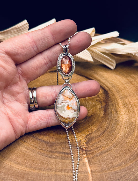 Reserved for Mikki-Laguna Lace Agate and Madras Sunstone Sterling Silver Pendant
