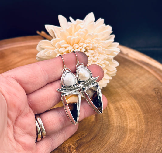 • Sterling Silver Montana Agate and Fresh Water Pearl Earrings