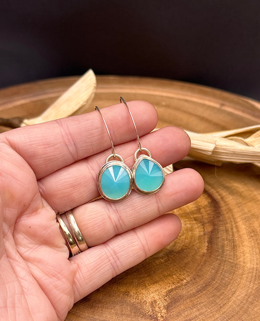 • Radial Cut Aqua Chalcedony Sterling Silver Dangle Earrings