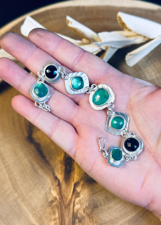 • Sterling Silver Green and Black Onyx Bracelet