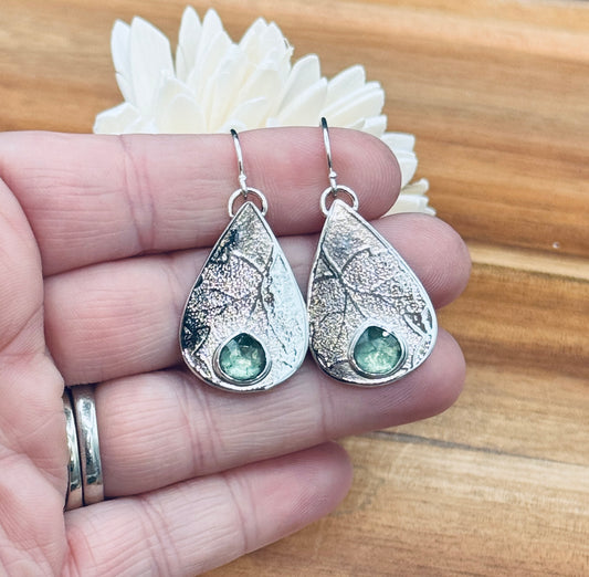 Smokey Petrified Wood and Teal Moss Kyanite Earrings