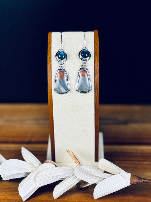 • Sterling Silver Polychrome Jasper and Labradorite Earrings