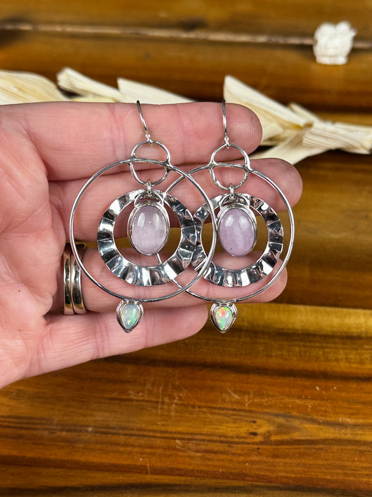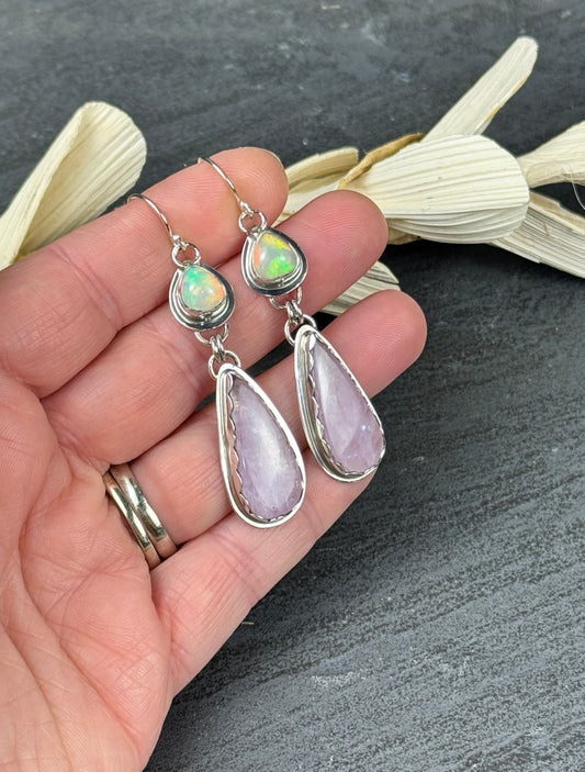 • Lavender Kunzite and Ethiopian Opal Earrings