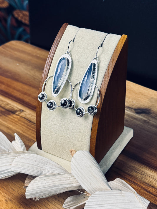 • Namibian Chalcedony and Black Moonstone Sterling Silver Earrings