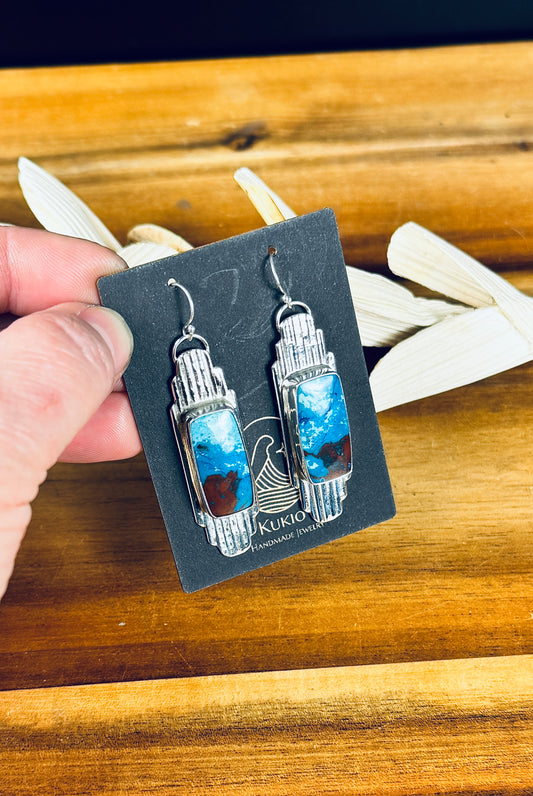 Shattuckite with Chrysocolla and Cuprite Sterling Silver Earrings