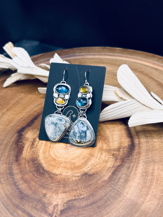 Ivory Creek Variscite with Teal Moss Kyanite and Yellow Sapphire Earrings