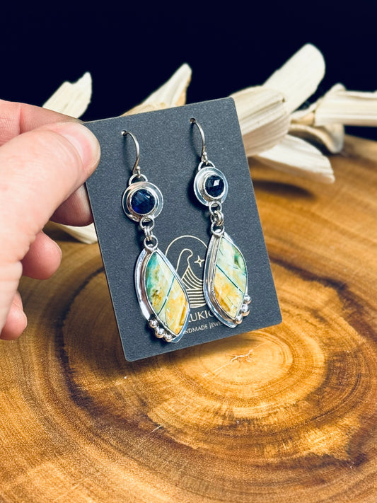 • Ivory Creek Variscite with Teal Moss Kyanite and Yellow Sapphire Earrings
