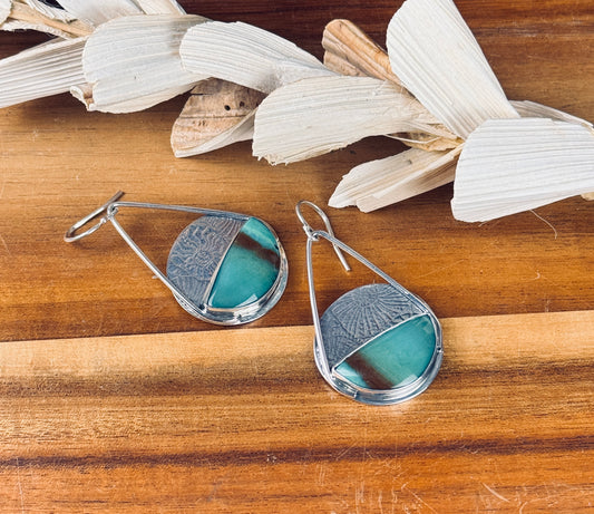 • Opalized Wood and Teal Moss Kyanite Sterling Silver Earrings