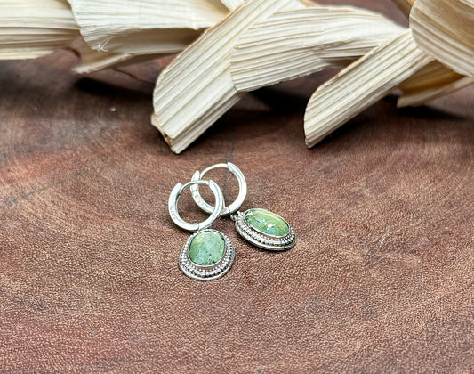 High Dome Gray Moonstone and Turquoise Sterling Silver Earrings