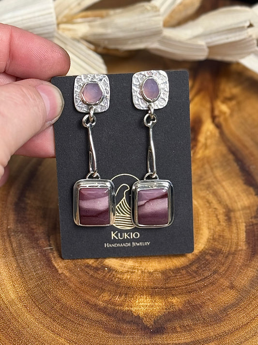 • Sterling Silver Mookaite Jasper and Lilac Chalcedony Earrings