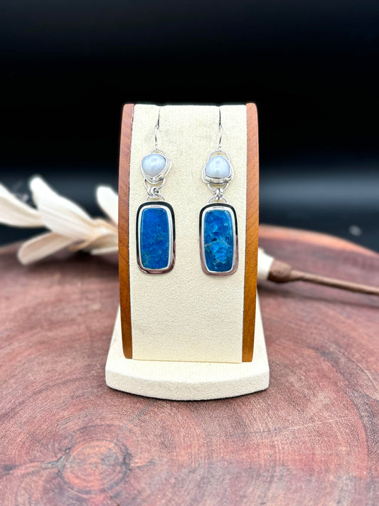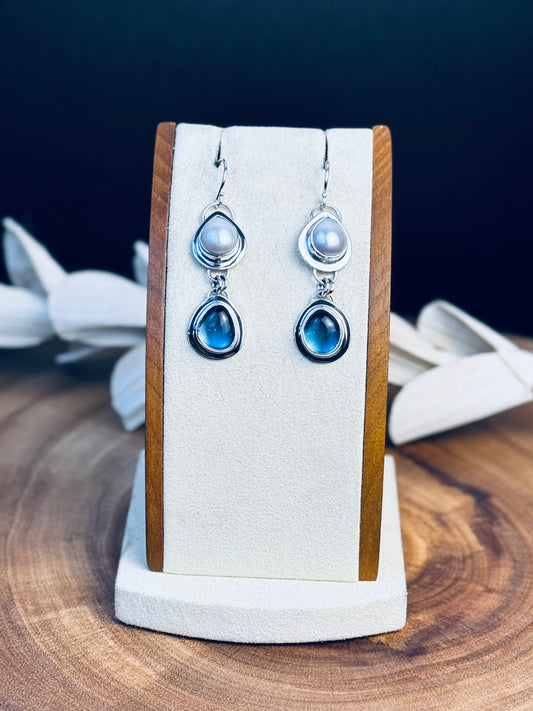High grade London Blue Topaz and fresh water Pearl Earrings