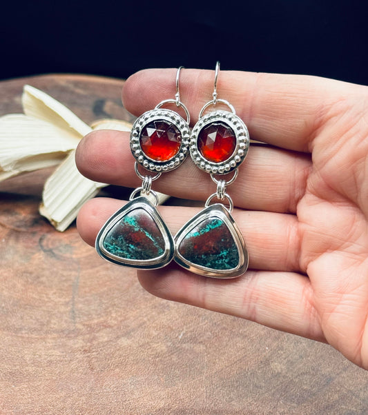 • Sonora Sunset Chrysocolla and Garnet Earrings