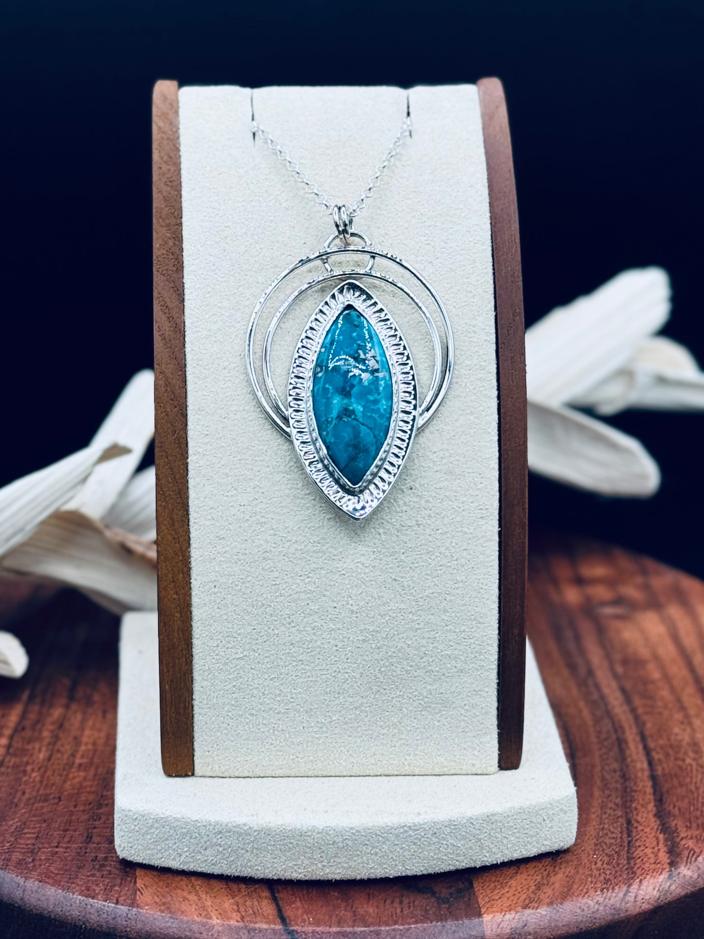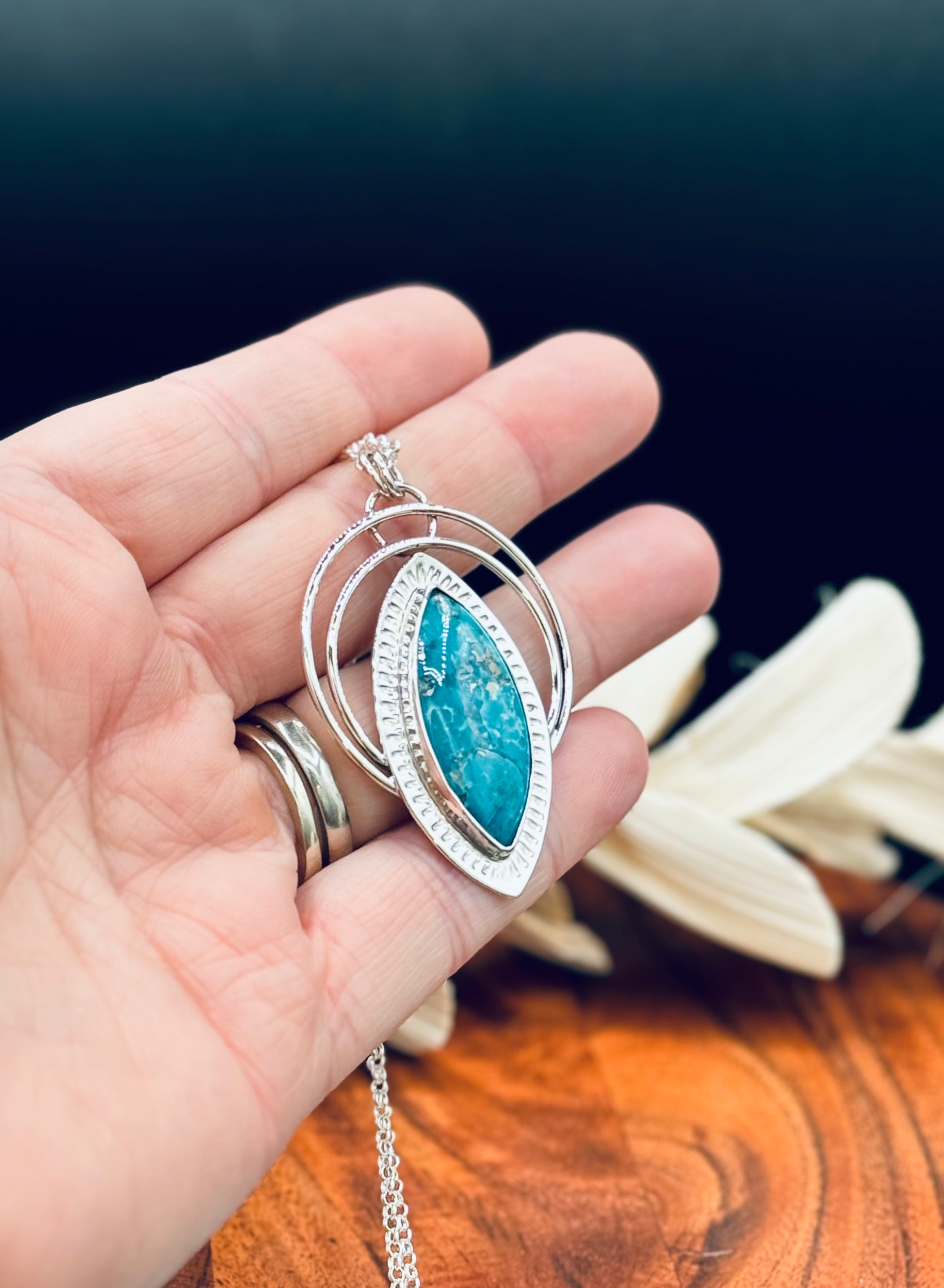 This color is pretty much impossible to capture in a picture but trust me when I say that it is perfection. Set on a hand stamped sterling silver landing and double hoops. This piece will definitely make a statement! Handmade and one of a kind.