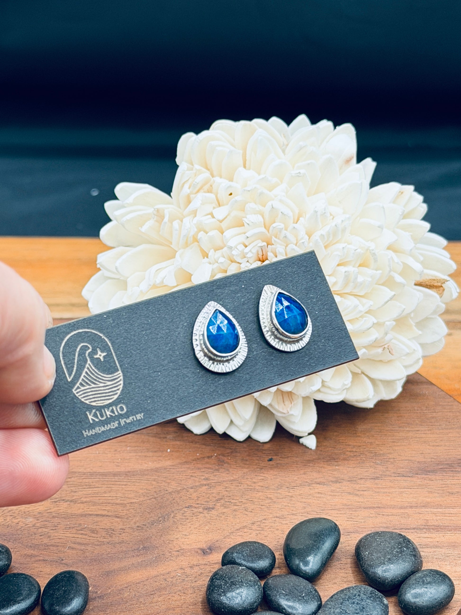 Sterling Silver Lapis Tear Drop Stud Earrings