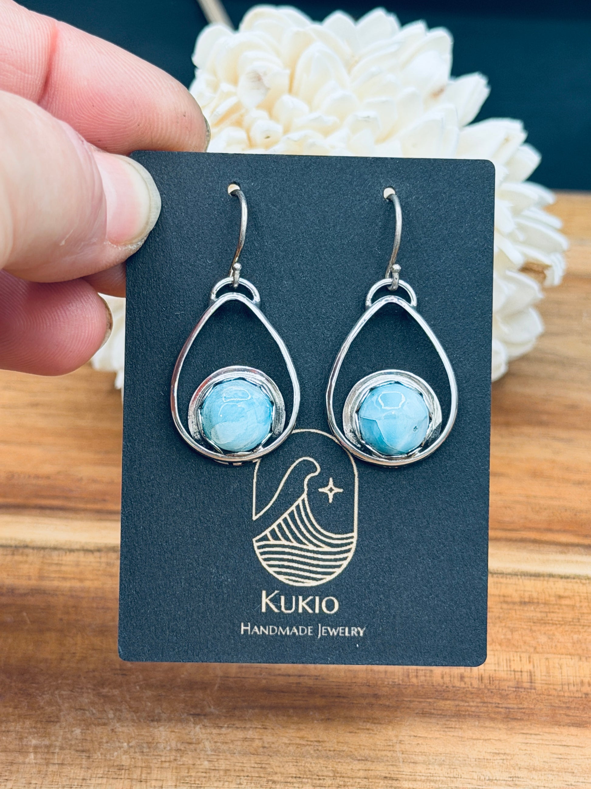 • Genuine Larimar gemstones (each with one-of-a-kind natural color variations)